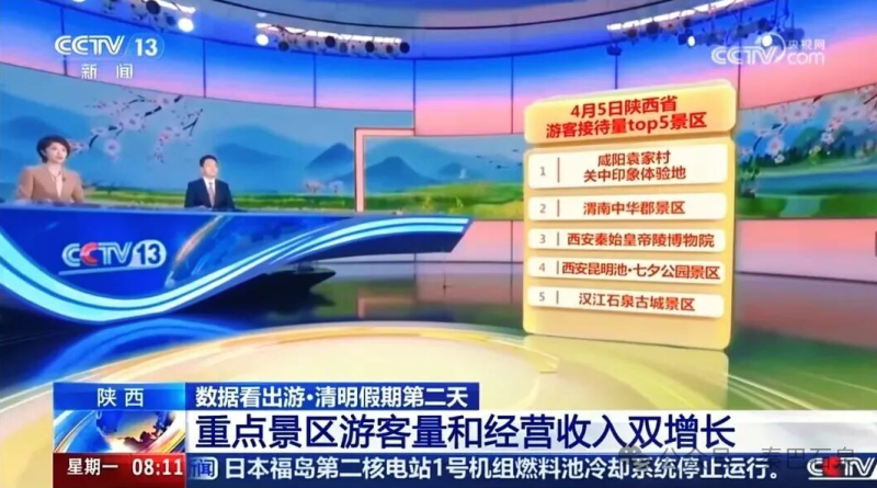清明文旅市场受到了媒体关注。其中,央视新闻频道《朝闻天下》栏目播出《数据看出游·清明假期第二天重点景区游客量和经营收入双增长》,报道假期旅游市场火热态势,西咸新区昆明池、丝路欢乐世界等文旅项目热度凸显;陕西联合足球俱乐部主场首场赛事相关宣传同步发声,全方位展现新区文体融合发展活力。