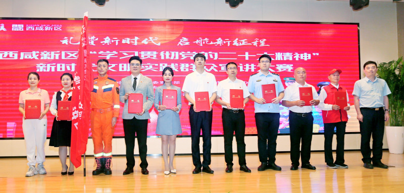 活动现场,主办方向进入决赛的10支宣讲队伍颁发聘书并授旗,他们组成的西咸新区新时代文明实践群众宣讲团将深入新区各基层单位广泛开展理论宣讲活动。