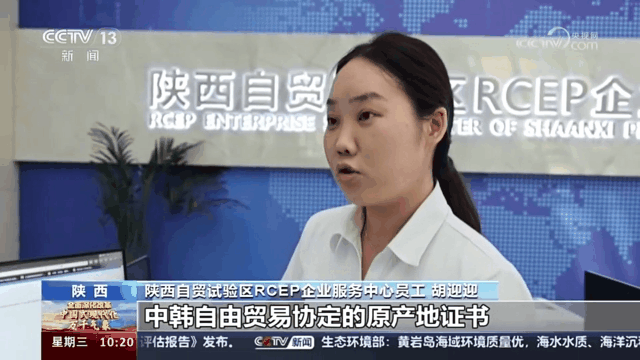 陕西自贸试验区RCEP企业服务中心员工胡迎迎:“我们建议企业办理中韩自贸协定的原产地证书,即可享受最优惠税率0%,相当于就是0关税。”