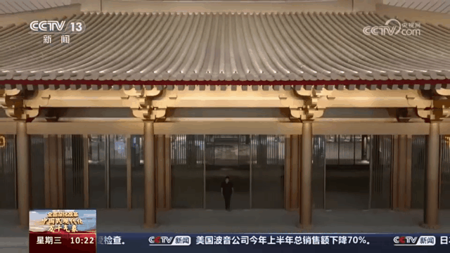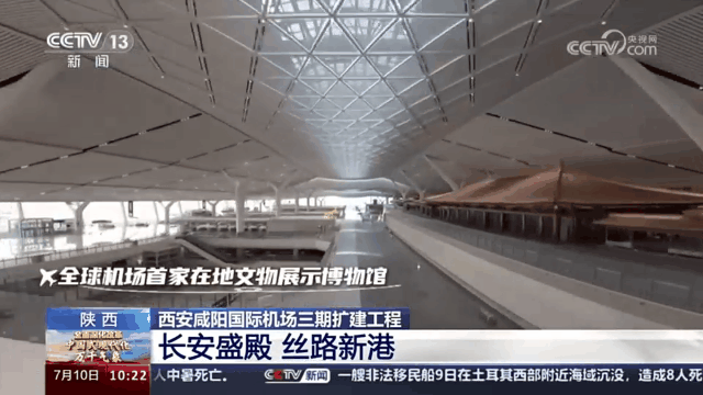 从这些建筑的风格,您可能会以为身处一家博物馆,但事实上这里却是西安咸阳国际机场三期扩建工程中的东航站楼出发大厅。镜头中的仿唐建筑群就位于航站楼内,这里未来将建设全球机场首家在地文物展示博物馆,展示西安机场历次建设期间考古发掘的文物,讲述考古发掘和文物保护的故事。