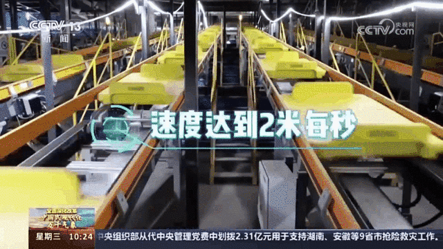 在行李分拣设备机房,这些高速运行的黄色托盘小车,速度达到了两米每秒,是传统输送机系统的两倍。行李从值机柜台至出港转盘平均处理时间大约为7分钟,最快时间仅需要5分18秒。