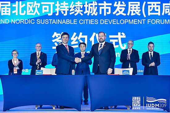 参赞沙龙环节结束后,西咸新区与北欧绿色建筑联盟、瑞典恩华特集团分别就绿色建筑设计、城市垃圾收集处理等签署战略合作协议,为新区高质量城市发展装上新引擎。