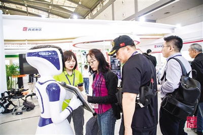 西北工业大学各种型号的无人机也精彩亮相,落户西咸新区沣西新城的翱翔小镇将发展成为全国首个以“空、天、地、海”无人系统产业为核心,科教产融四位一体的科创示范小镇;秦汉新城通过AR技术,让文物活起来、会说话,体验的客商络绎不绝。秦汉新城新丝路数字文化科技有限公司带来的文创丝巾、非遗花丝和秦汉华服等,以文物为基础素材进行创意设计,时尚也有文化;中译语通科技(陕西)有限公司带来的LanguageBox语言盒子、悦译翻译机等智能翻译硬件产品,可支持中、英、德、俄等37个语种与金融、科技、医疗、体育、口语等不同领域的高质量AI机器同声传译,很有科技范儿。