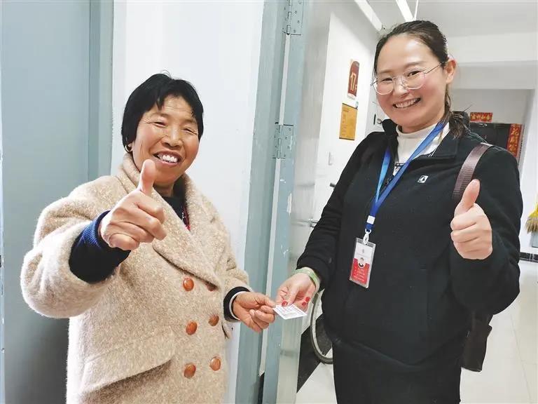 周丽娟是幸福里社区的专职网格员。2017年,周丽娟所在的陶家村拆迁动工,他们一家租房住进了幸福里社区。孩子就近上学,周丽娟和丈夫在附近工作,提前享受村民变居民的便利。2020年,周丽娟家如期回迁,她通过应聘担任了专职网格员,从社区发展的受益者变成了服务者。