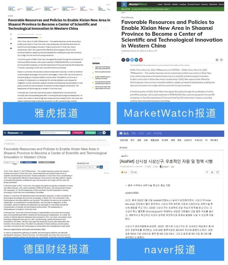 雅虎财经、道琼斯旗下MarketWatch,随着陕西秦创原创新驱动平台迅速落地成势,大批科创企业如雨后春笋般生长,越来越多的科研成果选择就地落地转化。在西咸新区,金融、法律、人力等各类科创服务持续导入,更加坚定了企业到此发展的信心,让这座动能强劲的开放创新之城离世界越来越近。