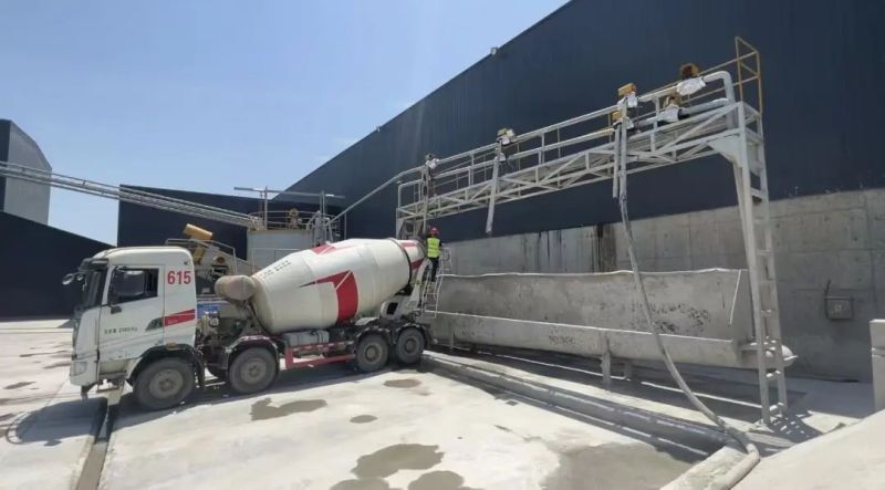 据姚晓东介绍,他们这个商混站总共有4条混凝土生产线,年产量高达100-150万方。如此大的生产量能做到一“尘”不染,都归功于两千多万元的环保设施投入。“整个生产线采用全部封包,防尘降噪,主机和粉料采用强制式脉冲自动除尘器,有效防止粉尘外露。全封闭的料仓,进出口为自动感应门,车辆进出料仓自动感应达到快速关闭,料仓内的自动喷淋系统,有效降尘覆盖率达到98%……”