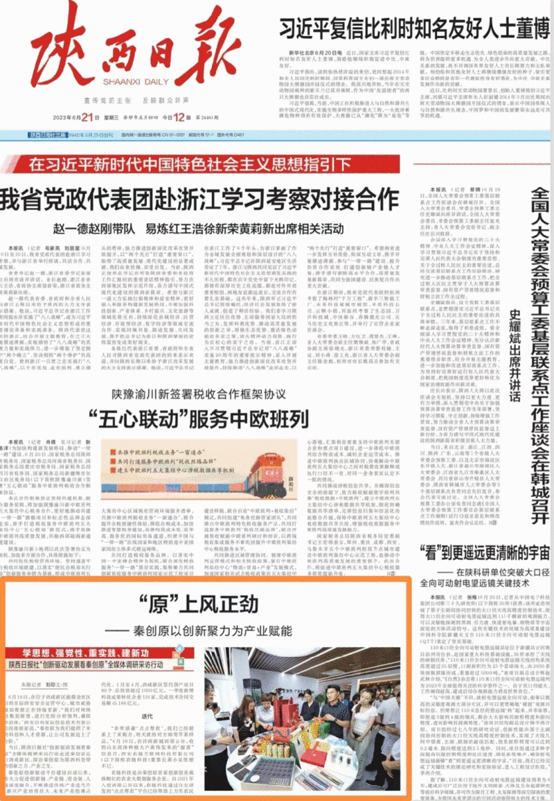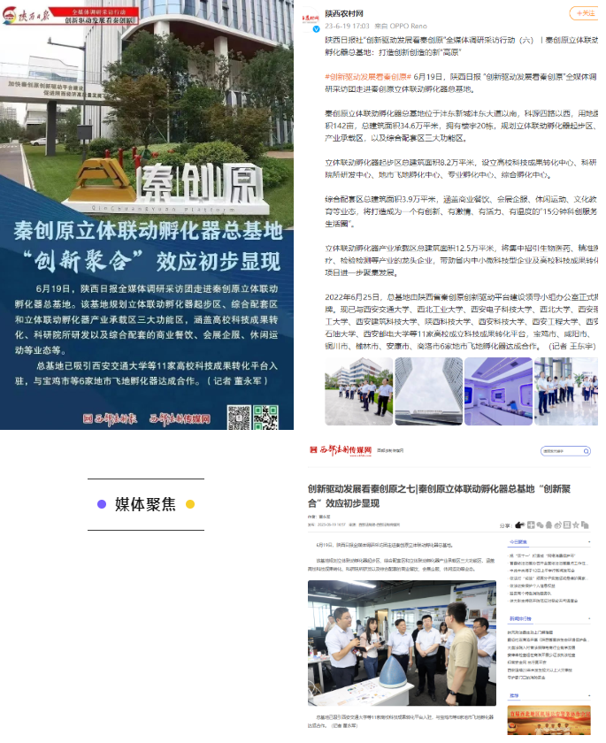 由陕西日报和下属三秦都市报、陕西农村报、西部法制报、党风与廉政杂志、群众新闻网等子报子网组成的全媒矩阵媒体团走进秦创原总窗口,深度了解了科技成果孵化、转化、产业化全过程,见证在“三项改革”作用下,一个个“金点子”在西咸新区落地为产品产线的硬实力。2天时间,相继推出各类新闻报道340余篇,总阅读量近840万。