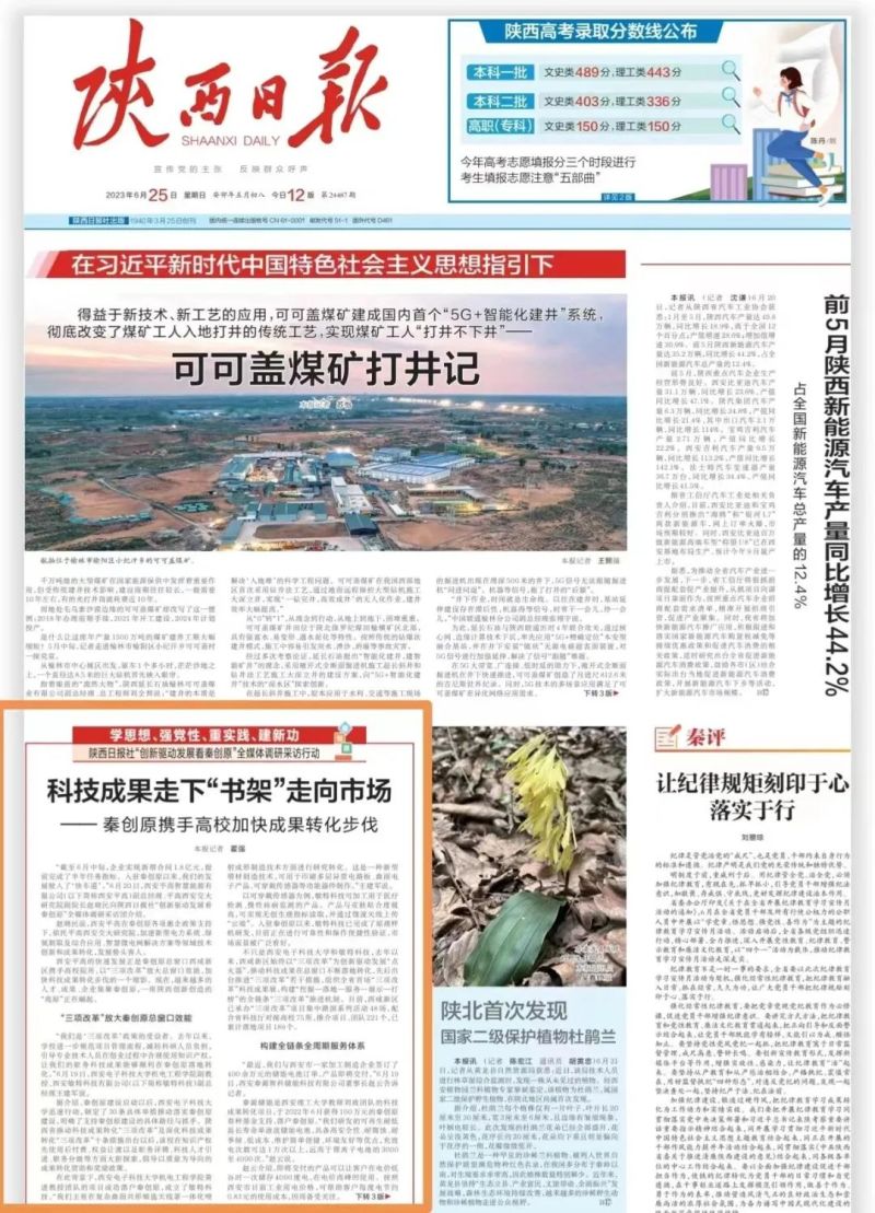 今天,陕西日报头版刊发《科技成果走下“书架”走向市场——秦创原携手高校加快成果转化步伐》,聚焦西咸新区作为秦创原创新驱动平台总窗口全面深化“三项改革”打通科技成果转化通道,全力打造科创企业聚集区和成果转化高地,全文如下。
