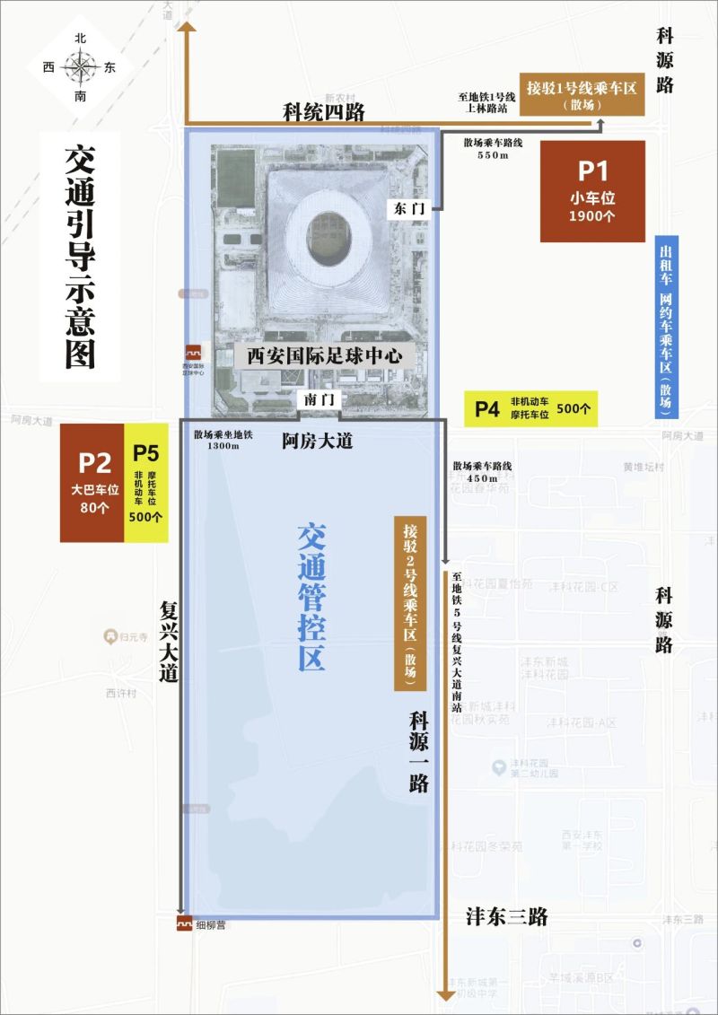 为确保比赛期间周边道路畅通有序,保障市民安全出行,赛事期间西安国际足球中心周边道路将根据交通管理需求,采取临时交通管控措施。