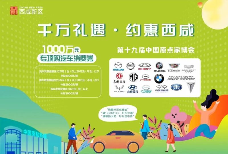 消费者在车展现场车企购车可领取西咸新区汽车消费补贴。补助标准为:
