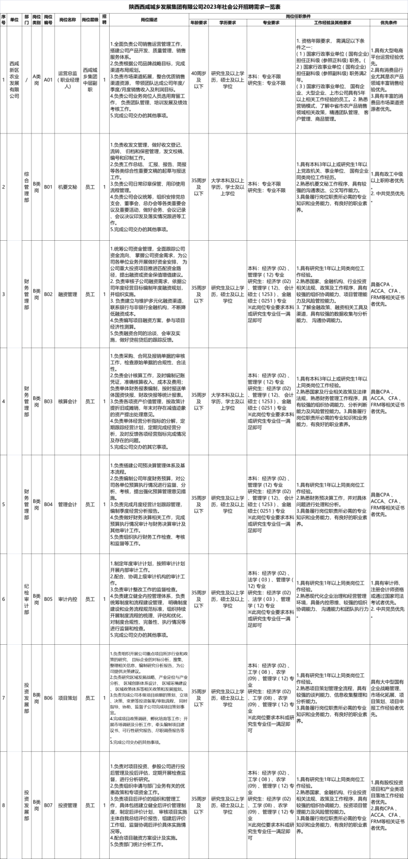 西咸城乡集团2023年社会公开招聘需求一览表
