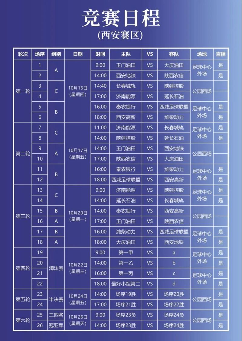 西安赛区的参赛阵容更是颇具看点,12支代表队均来自国内重点行业的领军企业:其中既有大庆油田、玉门油田、延长石油等支撑国家能源供应的“工业脊梁”;也有潍柴动力这样引领制造业发展的“制造先锋”;涵盖济南能源、长春轨交、西安轨交等保障城市正常运转的“城市动能”;包括秦农银行、陕西农信等服务经济发展的金融力量;还有西安高新区工会、西咸新区足球协会这类联盟性质的队伍,以及本土旗舰企业陕建集团代表队。这些队伍将在赛场上充分展示新时代中国职工的精神风采,彰显中国职工足球的蓬勃活力与时代力量。