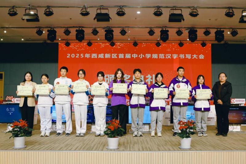 颁奖仪式上,西咸新区教育体育局相关领导为获奖选手及参赛教师颁发荣誉证书。当证书递到手中时,孩子们脸上洋溢着自豪的笑容,也更深刻地体会到汉字文化的魅力。