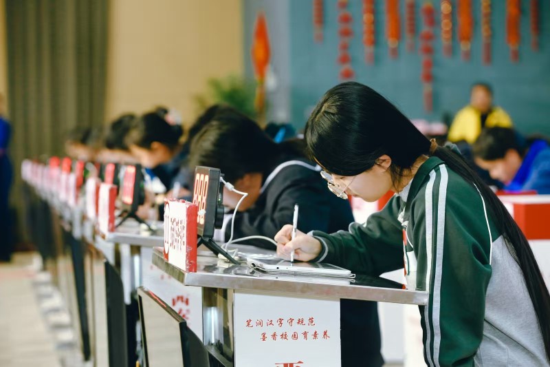 比赛环节,小学组聚焦基础汉字规范,选手们在田字格中认真书写,笔画工整、结构匀称,稚嫩的笔触中透着专注与认真;初中组兼顾规范性与流畅性,选手们运笔稳健,字迹清秀挺拔;高中组选手们笔墨酣畅、气韵生动,在规范书写的基础上融入个人风格,彰显出青年学子的文化自信。选手们坐姿端正、握笔规范,专注于笔下的每一个汉字,从起笔、行笔到收笔,一丝不苟。评委团按照“规范、端正、整洁、美观”的评分标准,确保比赛公平公正。赛场内墨香四溢,展现出一幅生动的汉字书写画卷。