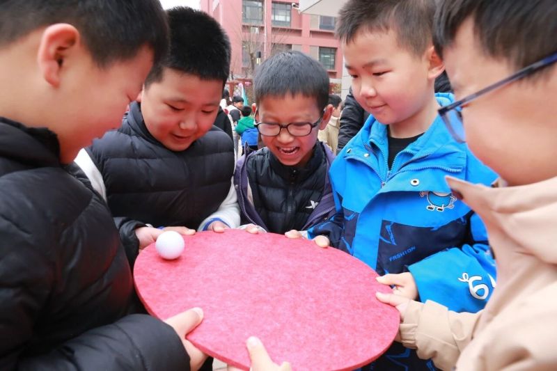 沣东阿房宫小学以“龙马精神启新程,五育融合乐游园”为主题,语文组的“骏马元宵猜灯谜”、数学组的“一笔画吉祥”妙趣横生;英语组的“字母接龙帽上舞”创意十足;科技组的“人体导电实验”更是吸引众多小探索者,手拉手点亮灯泡的瞬间,科学的神奇与团队的力量交织绽放;美术组“长卷涂鸦绘春天”成为最亮丽风景,孩子们挥洒画笔,共同描绘心中的春天。