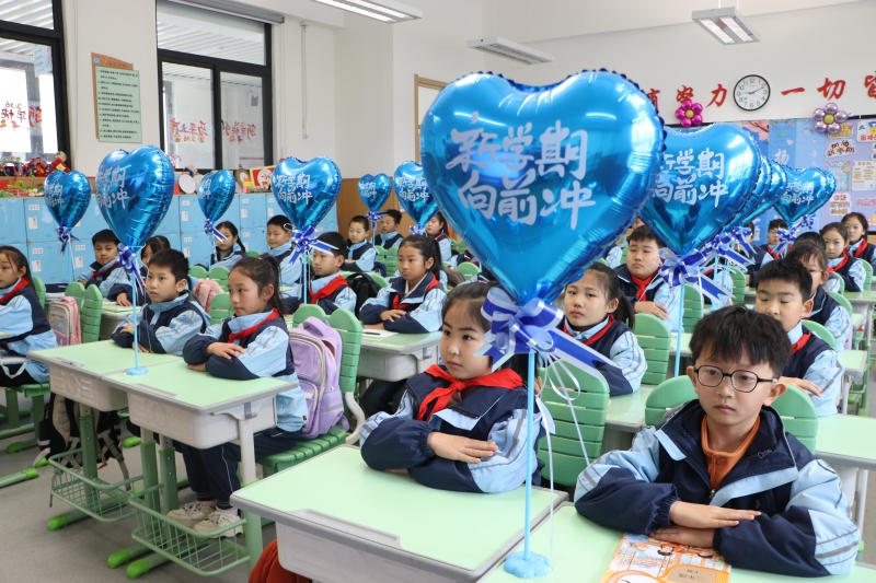 西咸新区泾河瀛洲小学的老师们精心布置班级氛围,迎接学子返校。走进教室,课桌上崭新的教科书用红色丝带系成蝴蝶结,静静等待着它们的小主人;蓝色气球点缀其间,清新雅致;黑板上的欢迎语饱含温情。整洁温馨的教室、用心的细节,传递着老师们的期待与祝福,让孩子们在满满的仪式感中开启新学期。
